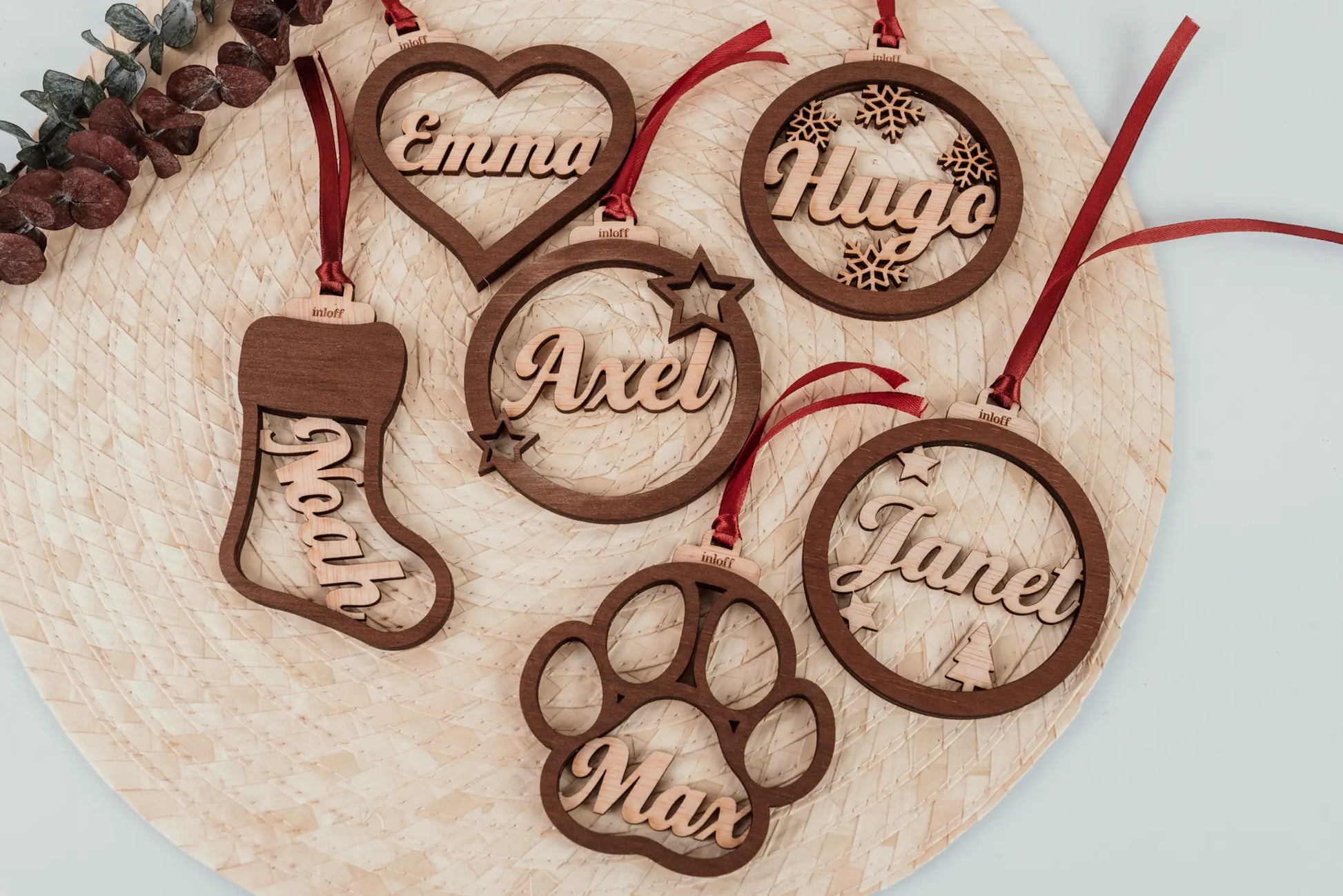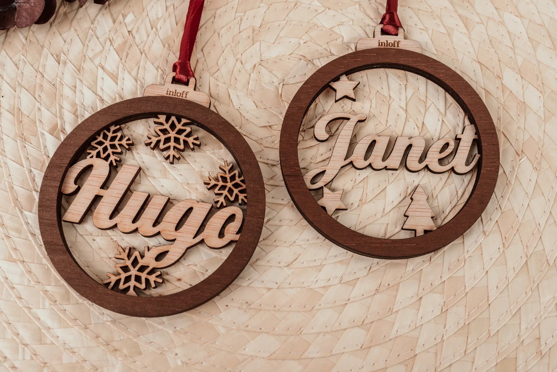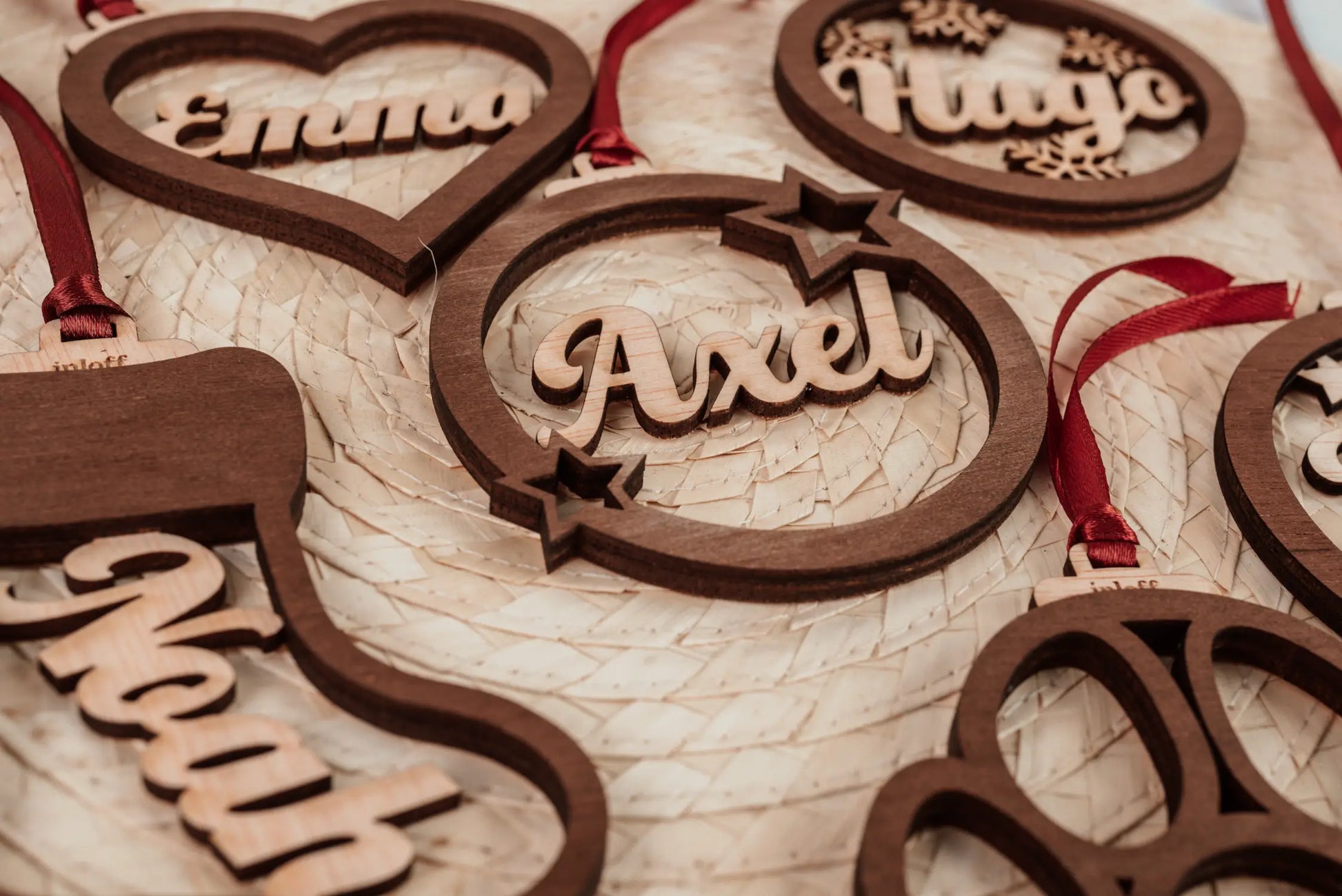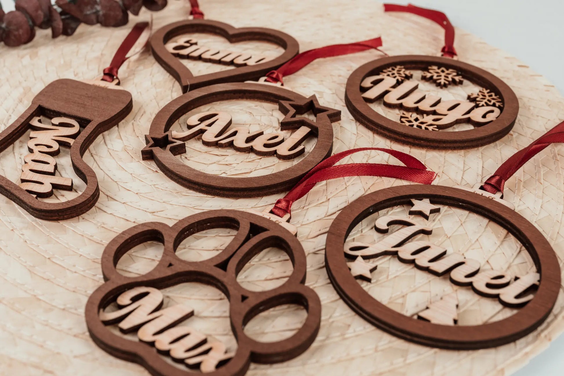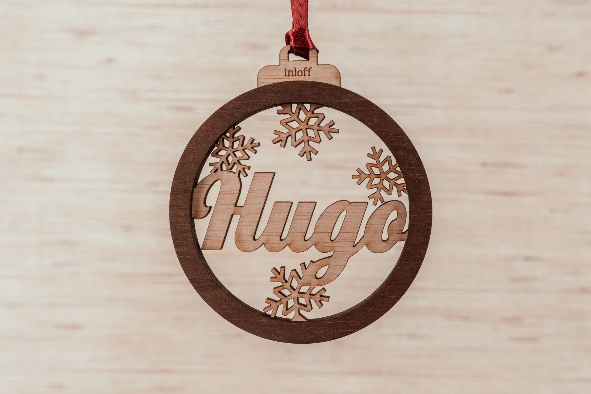 El acabado en madera natural le aporta una calidez inigualable, perfecto para combinar con cualquier estilo de decoración, desde lo más clásico hasta lo más minimalista. ¿Te imaginas lo especial que será tu árbol con el nombre de tus seres queridos colgando en él? 🎄 Cada bola incluye una cinta de raso rojo o plateada, lista para colgar y transformar cualquier rincón en un espacio lleno de amor y detalles.