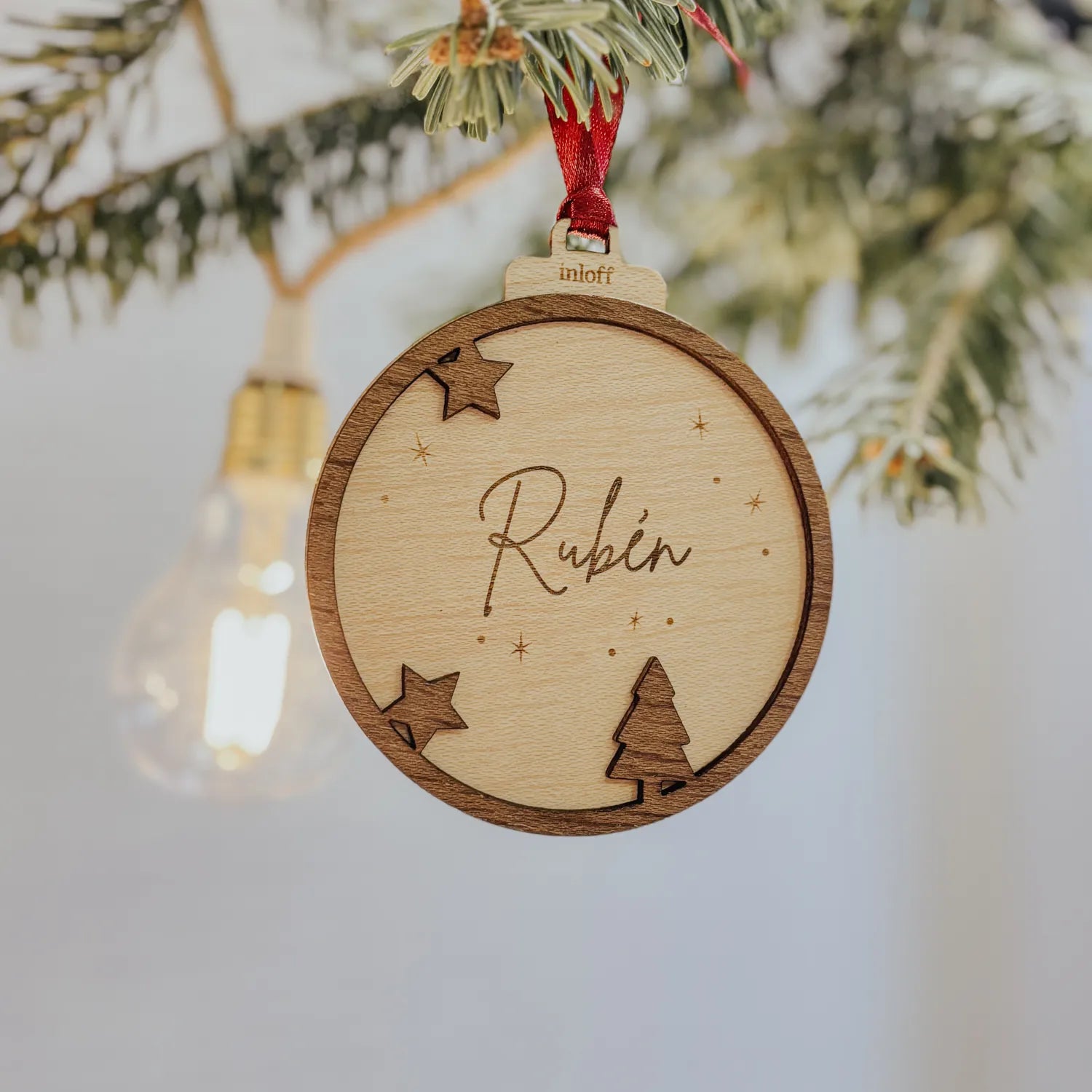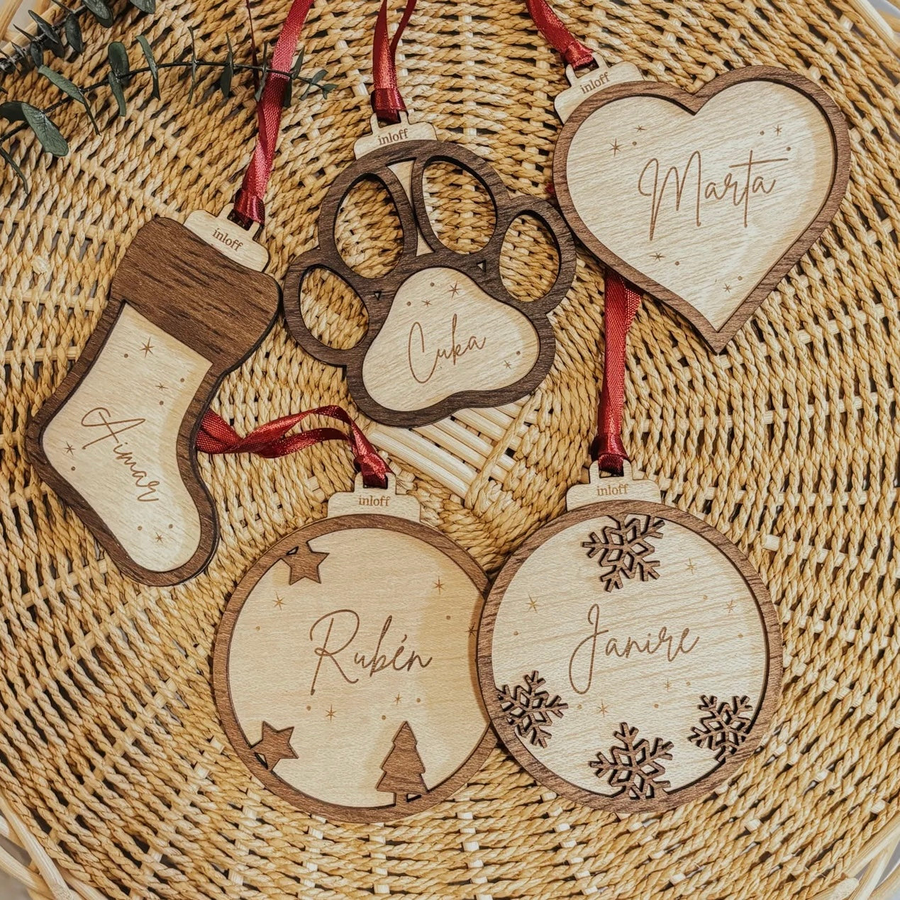 El acabado en madera natural le aporta una calidez inigualable, perfecto para combinar con cualquier estilo de decoración, desde lo más clásico hasta lo más minimalista. ¿Te imaginas lo especial que será tu árbol con el nombre de tus seres queridos colgando en él? 🎄 Cada bola incluye una cinta de raso rojo o plateada, lista para colgar y transformar cualquier rincón en un espacio lleno de amor y detalles.
