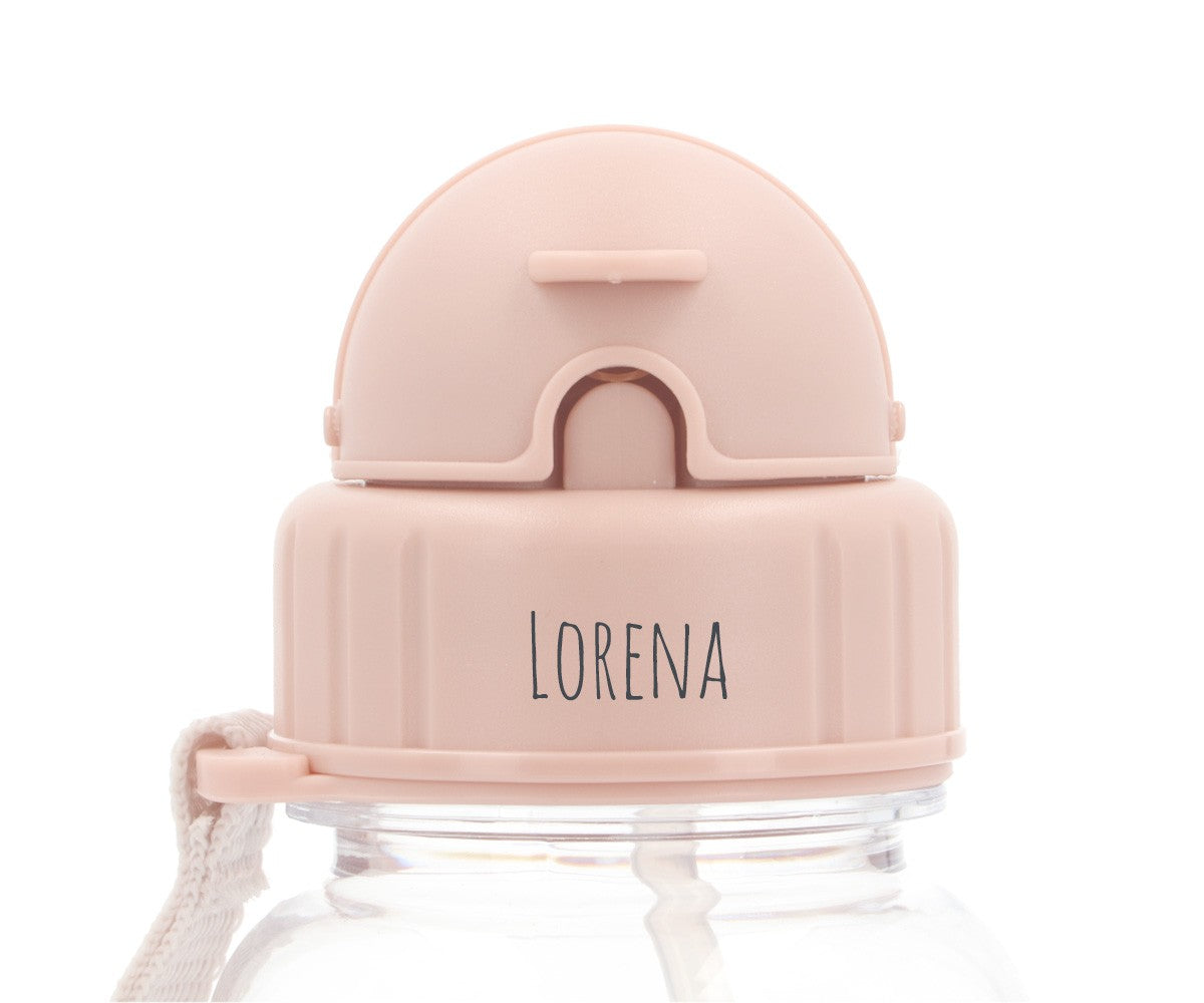 La Botella Plástico 500 ml de la colección Geometric Nature de Tutete está fabricada en Tritán transparente, con pajita de silicona y tapón personalizable con el nombre del peque. Su estampado mezcla formas geométricas y motivos de naturaleza (flores, hojas, corazones, casitas) en tonos suaves, perfecto para combinar con la colección. Ligera, resistente y libre de BPA, es ideal para el cole y las actividades diarias.