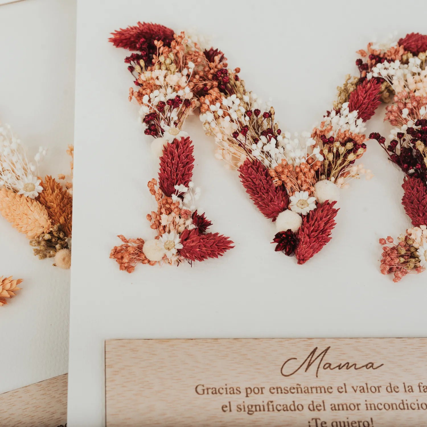 ¿Quieres hacer un regalo memorable a esas personas especiales de tu boda? Nuestro cuadro de madera con la inicial de flores preservadas de esa persona tan importante es la opción perfecta.