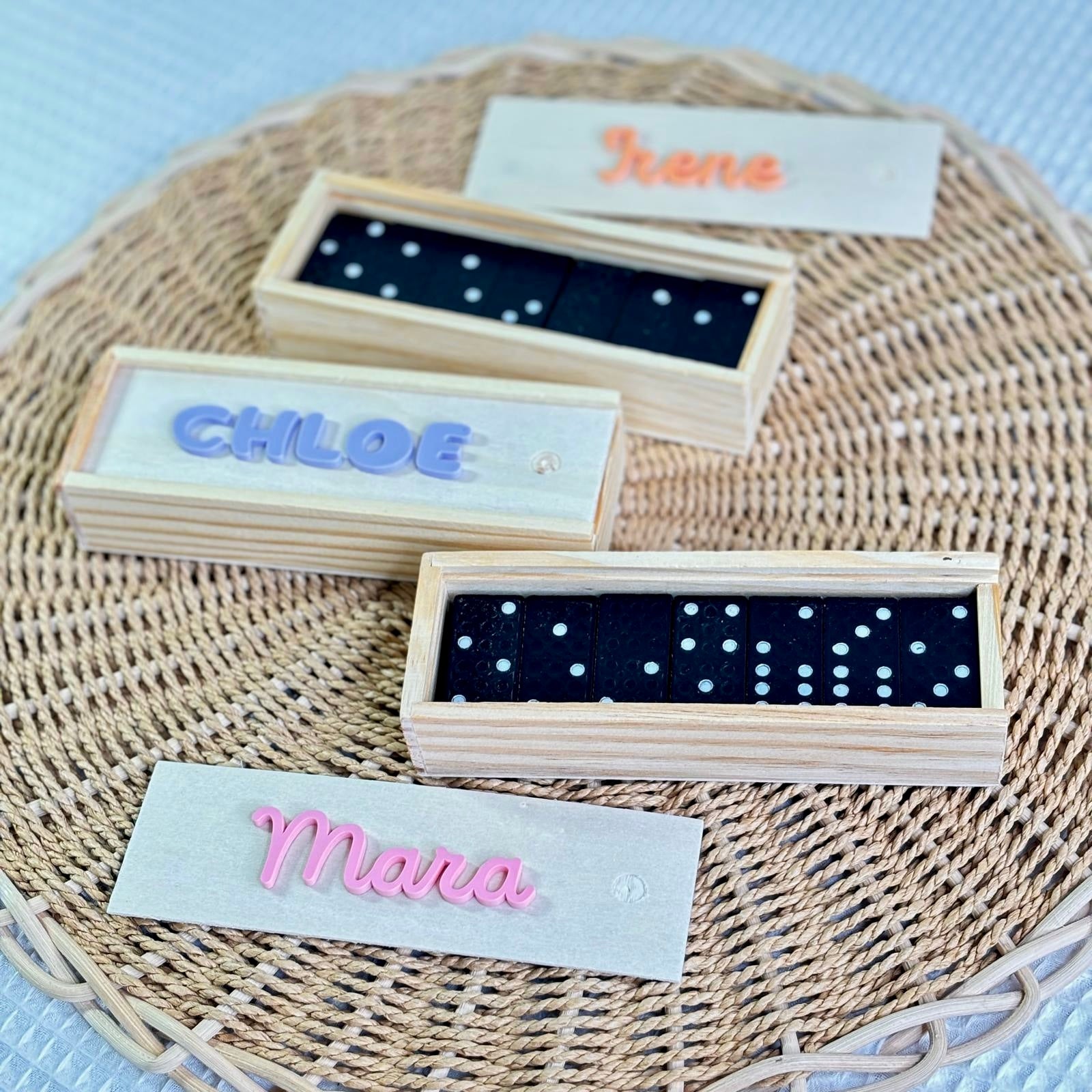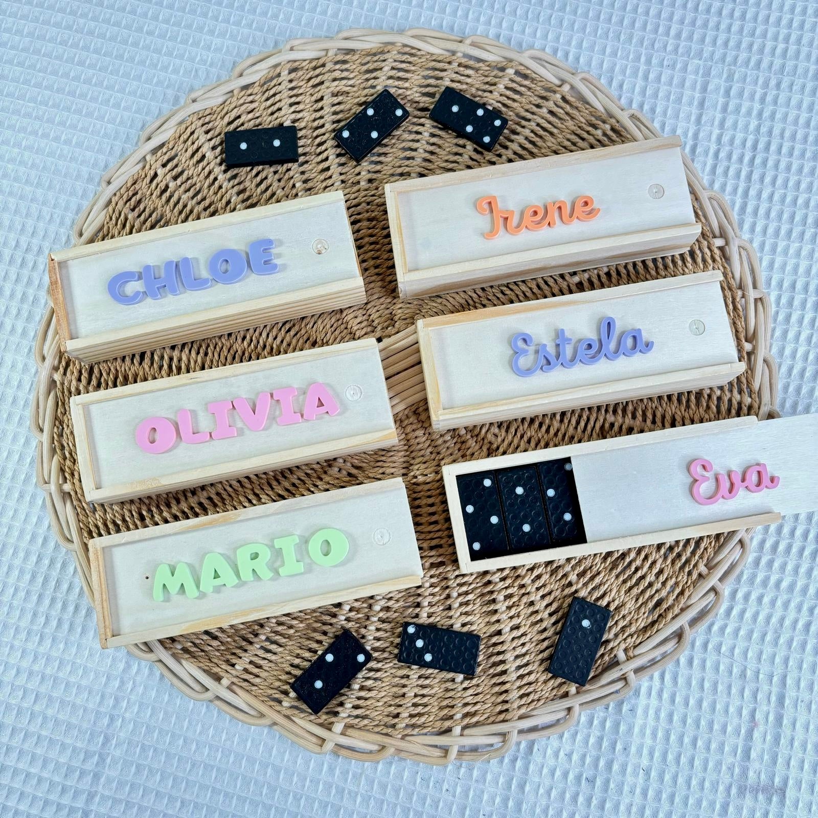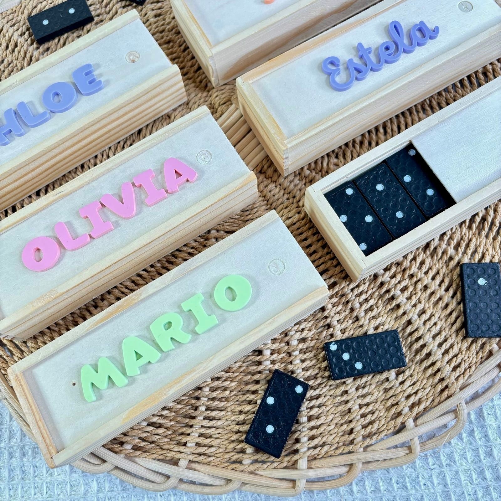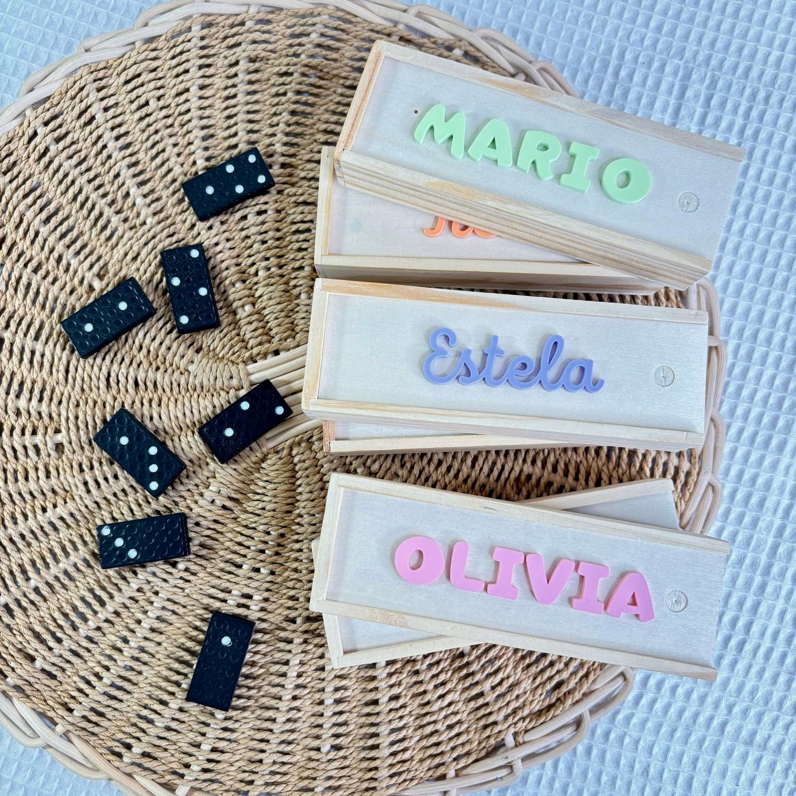 ¡El juego clásico del dominó se vuelve aún más especial con nuestra versión personalizada! Imagina la felicidad en el rostro de ese peque cuando vea su nombre en la tapa del dominó.