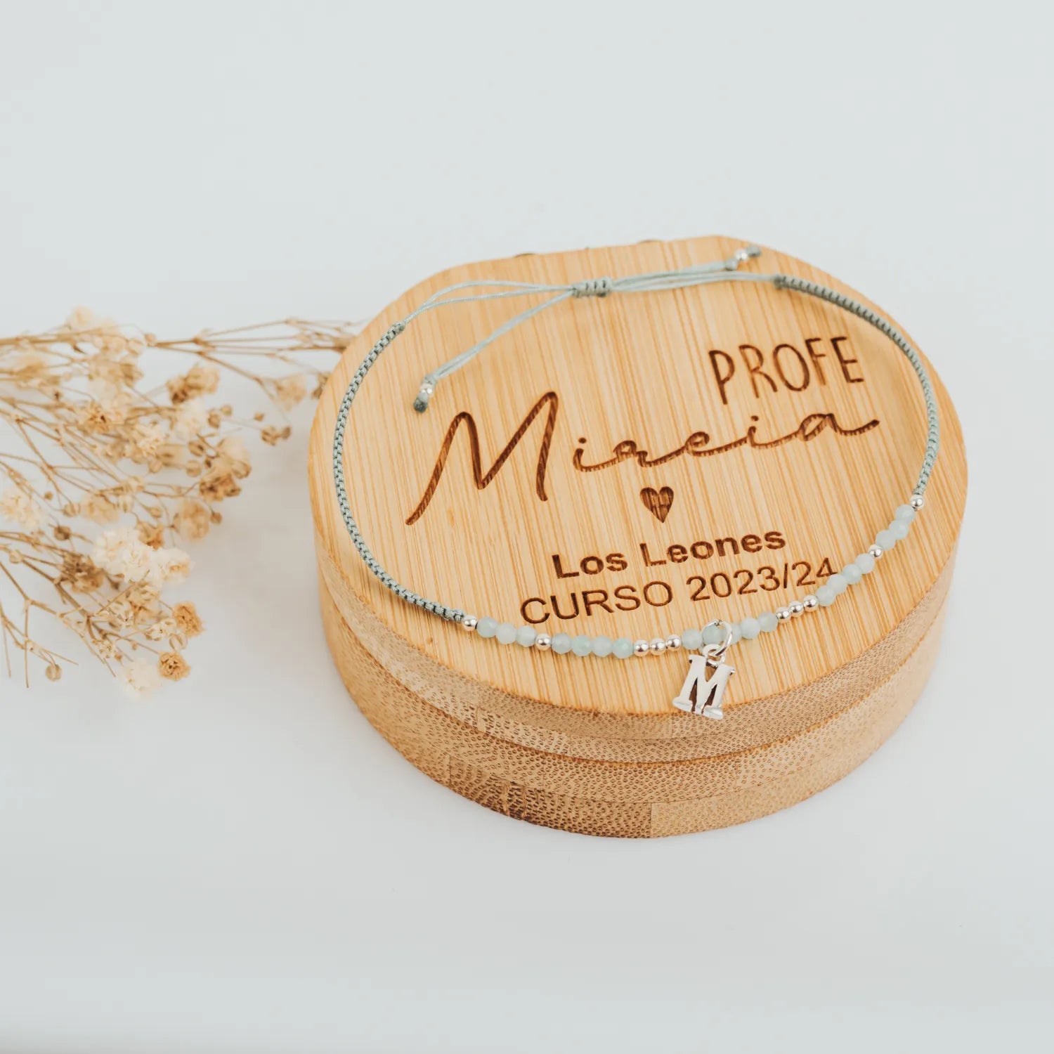 Haz que tu profesor se sienta especial con nuestro Kit Pulsera Plata + Joyero Especial Profes. Este elegante conjunto incluye una pulsera de plata de ley 925 personalizable y un joyero fabricado a mano con madera eco-friendly, ideal para guardar recuerdos valiosos. Un regalo perfecto para mostrar tu aprecio y gratitud.