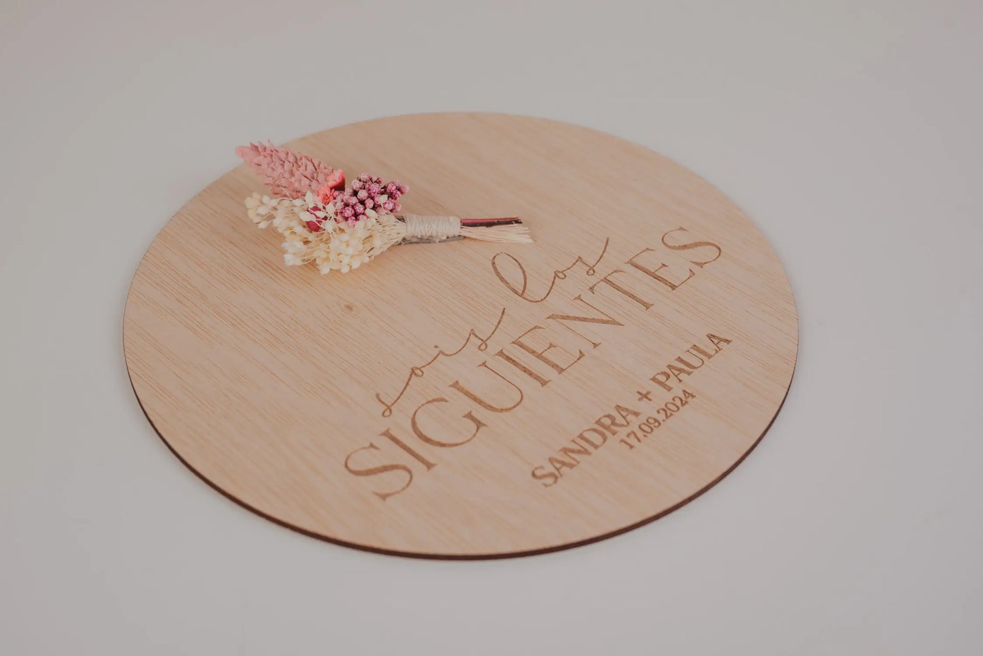 Esta pieza circular es como la promesa del amor eterno: sin principio ni final, perfecta y continua. Cada línea y cada textura de la madera narran una historia de cariño y afecto que estás a punto de compartir con esos afortunados.
