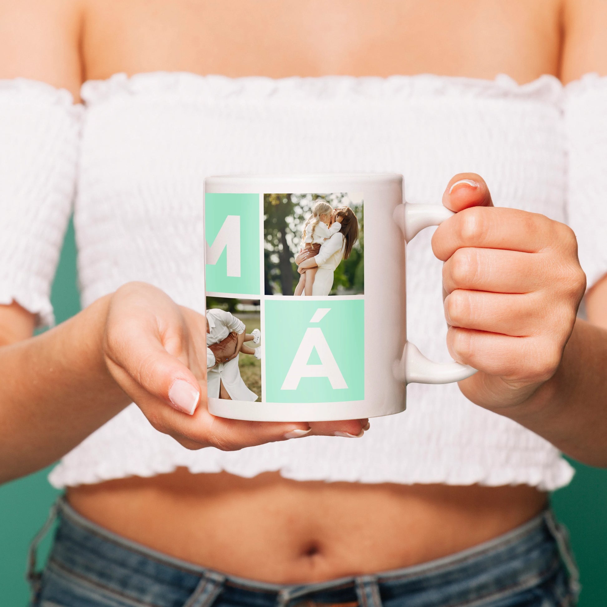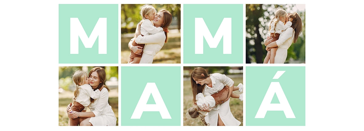 La presentamos con un collage moderno y minimalista, enmarcado por las letras de "MAMÁ", donde cada imagen celebra los pequeños grandes momentos compartidos. Ideal para hacer de cada café mañanero o té de la tarde, una pausa para el recuerdo y el cariño. 📸💗